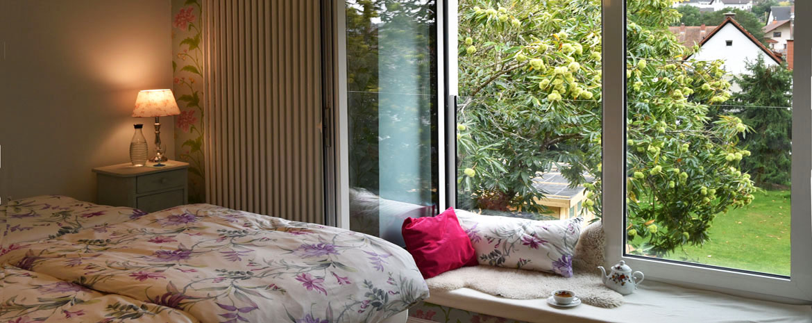 Die Lage von Annettes Pfalz ist optimal, direkt am Wald gelegen, in einem verkehrsberuhigten und ruhigen Wohngebiet von Hinterweidenthal, mit einem großen Garten, in dem bei schönem Wetter von morgens bis abends die Sonne scheint, in dem alte Bäume und Esskastanien Schatten spenden und lauschige Sitzplätze schaffen.